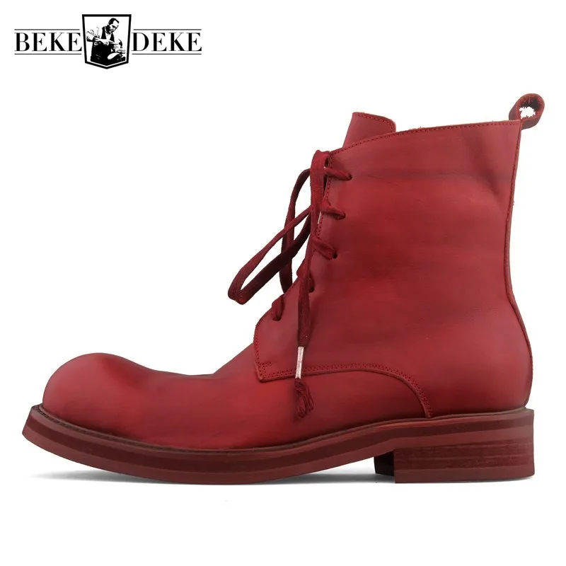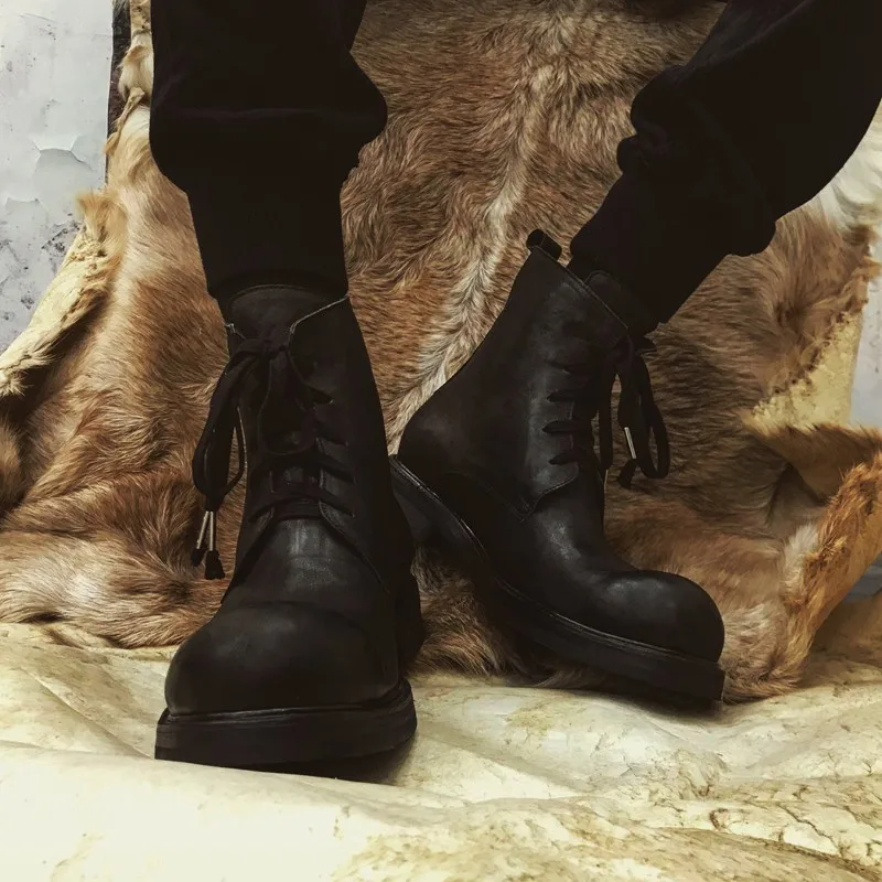 REVIEW TOP SELLER Handmade Vintage Lace Up Ankle Boots Men Winter High-Top Platform Sneakers Classic Genuine Leather