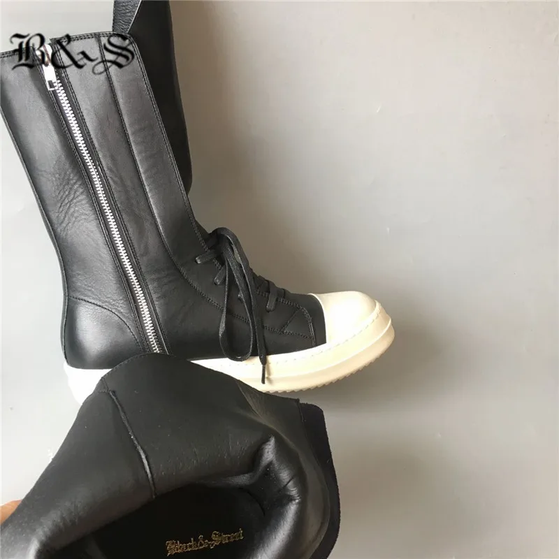 real picture High-TOP Women Boots fashion Trainers Genuine Leather Boots Casual Sneaker Lace-up Zip